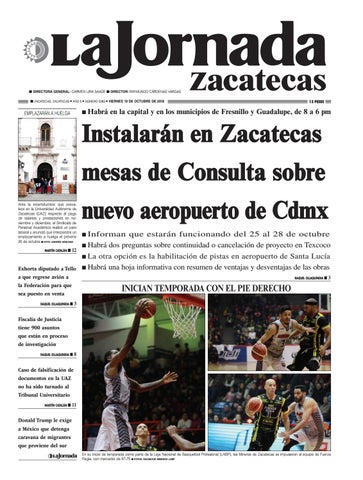 n DIRECTORA GENERAL: CARMEN LIRA SAADE n DIRECTOR: RAYMUNDO CÁRDENAS VARGAS n ZACATECAS, ZACATECAS l AÑO 5 l NÚMERO 5283 l VIERNES 19 DE OCTUBRE DE 2018