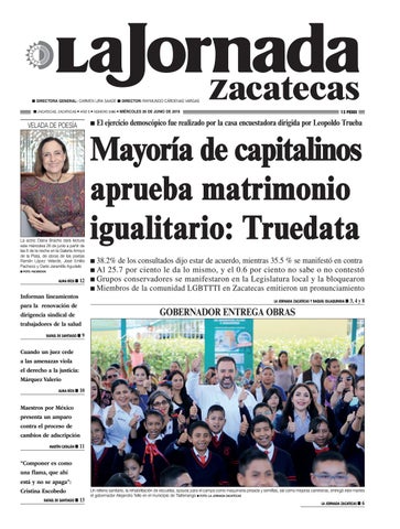 n DIRECTORA GENERAL: CARMEN LIRA SAADE n DIRECTOR: RAYMUNDO CÁRDENAS VARGAS n ZACATECAS, ZACATECAS l AÑO 5 l NÚMERO 5486 l MIÉRCOLES 26 DE JUNIO DE 2019