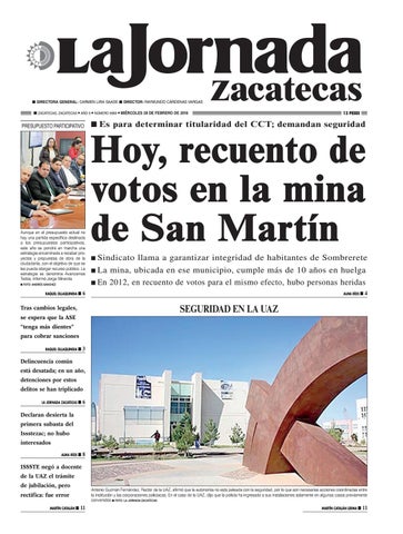 n DIRECTORA GENERAL: CARMEN LIRA SAADE n DIRECTOR: RAYMUNDO CÁRDENAS VARGAS n ZACATECAS, ZACATECAS l AÑO 5 l NÚMERO 5093 l MIÉRCOLES 28 DE FEBRERO DE 2018