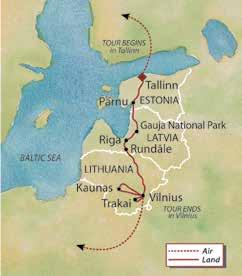 Today we continue to Lithuania’s capital city of Vilnius. It is well known for its Baroque architecture. On our journey to Vilnius, we will make a stop before leaving Latvia to visit Rundale Palace, rural Latvia’s most distinguished Baroque monument. Enjoy a walking tour in Old Town Vilnius and drive to Trakai, to visit the Trakai Island Castle whose history dates back to the 14th century. An excursion to Kaunas includes a stop at the Rumsiskes Open Air Museum, as well as the Devil Museum, a bizarre museum that owes its existence to the eccentric Antanas Zmuidzinavicius (1876-1966) who collected over 2,000 depictions of devils from all over the world or the M.K. Ciurlionis National Museum, featuring the largest collection of the legacy of this Lithuanian artist, composer and public figure. Day 8 you are transferred to the Vilnius Airport for your departure flight.