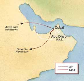 Abu Dhabi & Depart Home St Regis Saadiyat Island Resort Abu Dhabi Drive to the capital of UAE - Abu Dhabi today, which is also called the “Manhattan of the Middle East”. One of the wealthiest and most modern city-states in the world. The city is renowned for its lush greenery, planned development and beautiful Corniche. Your city tour will include a visit to the Falcon Hospital where you will see live medical work in progress and have a chance to have a large and majestic falcon sit on your arm. Our journey continues to the Sheikh Zayed Mosque, and afterwards venture to the Yas Island to see the only hotel built on a Formula 1 race track. Depart for home or on to your next destination with fond memories that you will treasure forever.