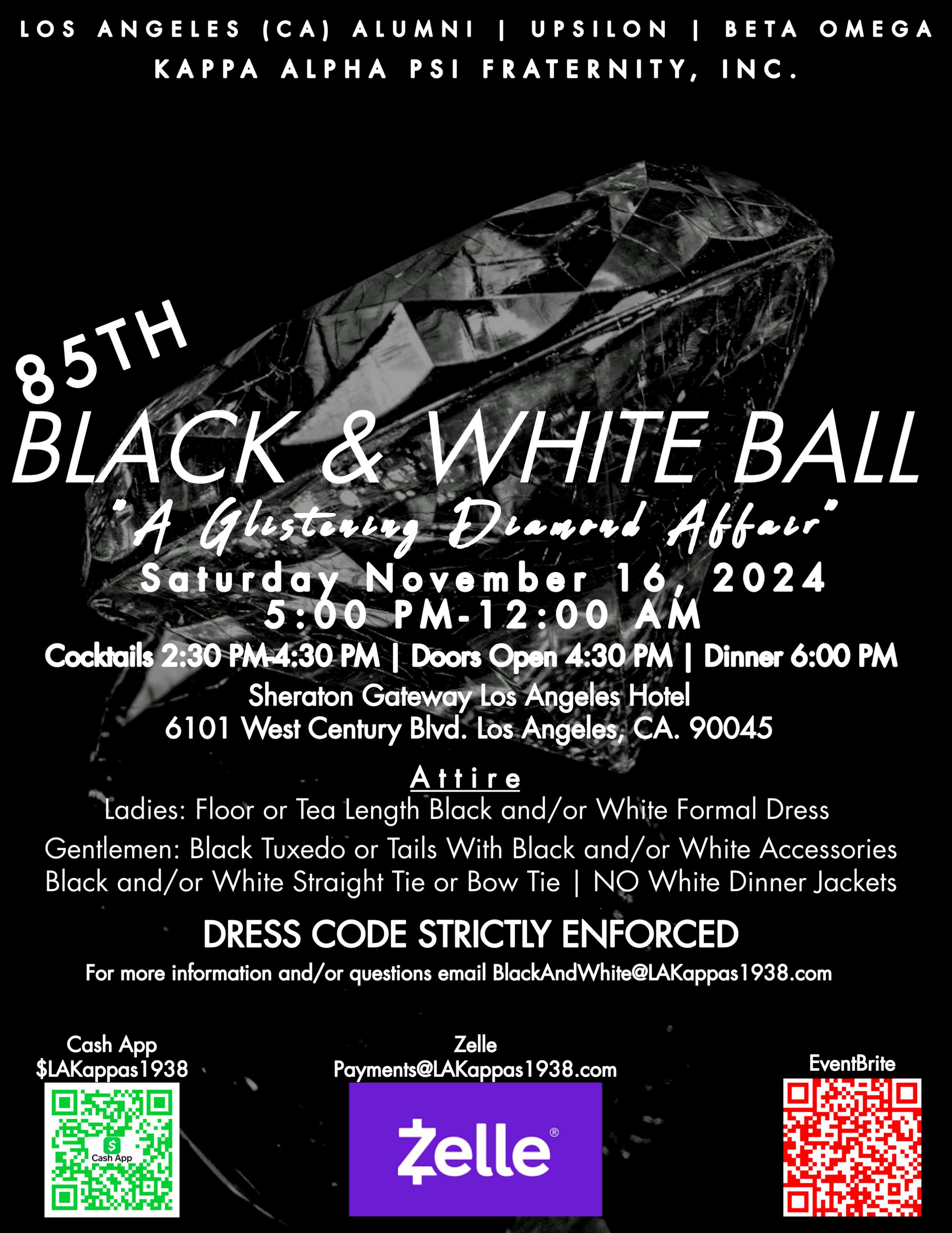 We are thrilled to invite you to the upcoming 85th Black and White Ball-"A Glistening Diamond Afair" , a night dedicated to elegance, glamour, and the timeless allure of Black and White.