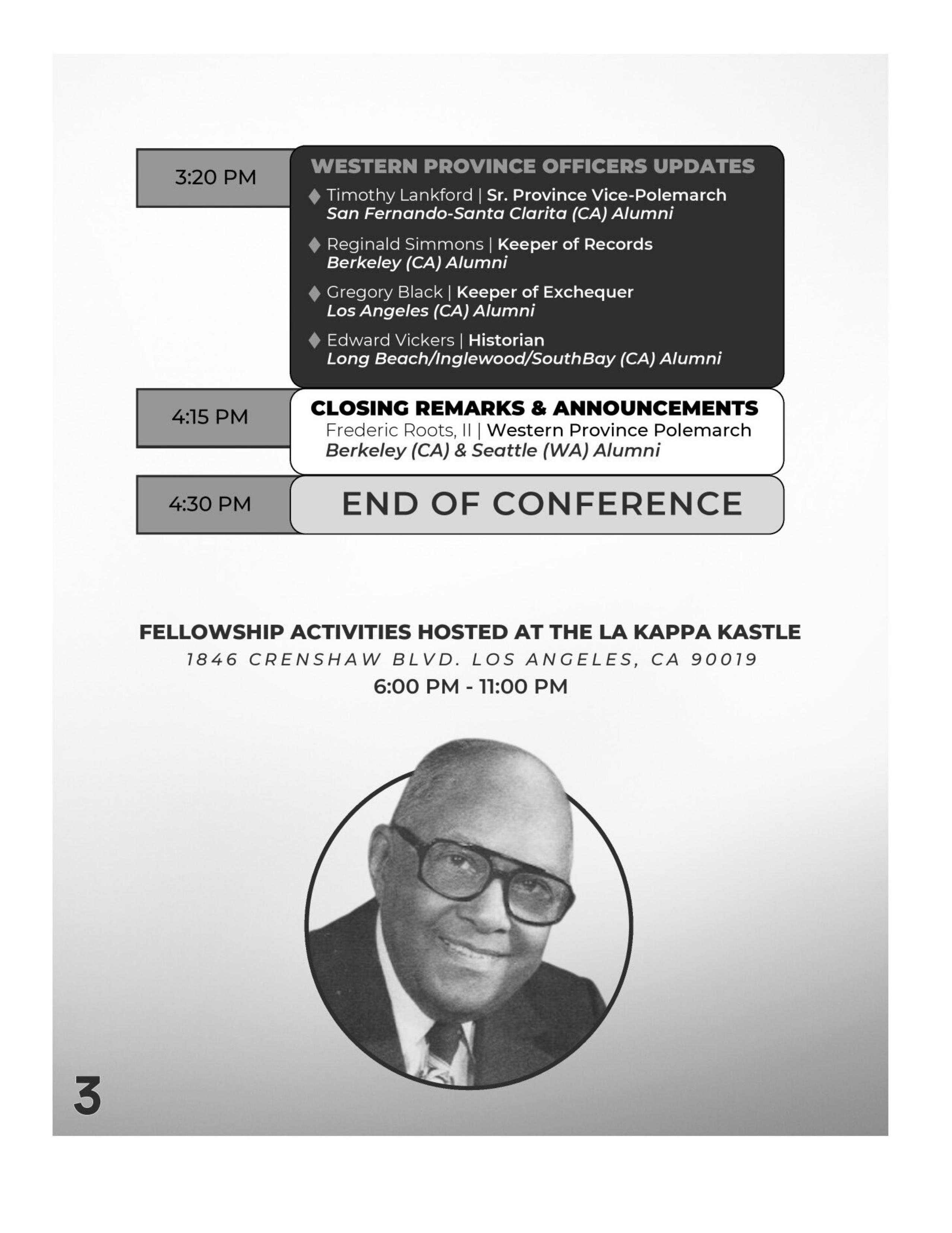 Beginningthisweek,theWesternProvincewillbehostingitsannualC. RodgerWilsonLeadershipConferenceattheFaithfulCentralBibleChurch inInglewood.Inthismonth’sissueyouwillfndinformationrelatedtoboth theconferenceandeventsthatwillbehostedattheKastle.