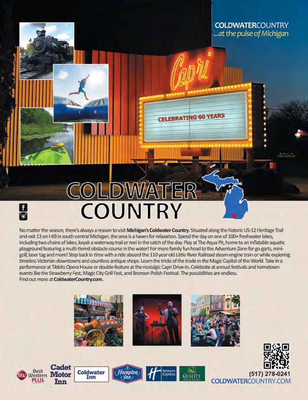Whether it’s cruising the chain of Lakes or the thrill of catching bass, walleye, and panfish. Just a skip away are the Laker towns of Coldwater, Quincy, Union City, and Bronson. Come visit for a day or spend a week at the lake. Take in the sights and sounds of the top local attractions that include Tibbits Opera House, Adventure Zone, Capri Drive-in, Little River Railroad, Children Museum or the Antique malls there is something for everyone.