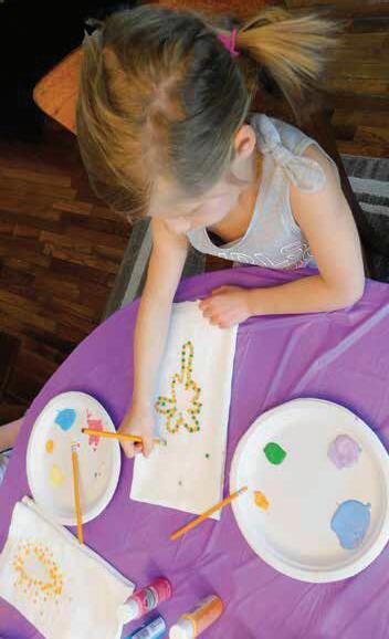 the eraser end into the paint and dot paint around contact paper shape, making sure to coat edges, and then filter the dots out and around the object as far as desired.
