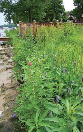 Unlike the deep root systems of native shoreline plants, lawn grasses have shallow roots. Shallow-rooted plants cannot stop water from eroding the shorelines of rivers and lakes.