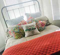 I always buy my comforter in a neutral color. Then, when the seasons change, I change up my pillows and throws. I start by layering the pillows in many colors and textures. Yes, it is OK to mix plaids with stripes and florals. Rule of thumb: Pick a base color and work from there. Pillows and throws don’t have to be a big expense, but they sure do change the mood of a room. Don’t forget the nightstand. Keep it sweet and simple. Stack a few of your favorite reads on the nightstand for some dimensional height. Add a small bunch of flowers to give you the color you need.