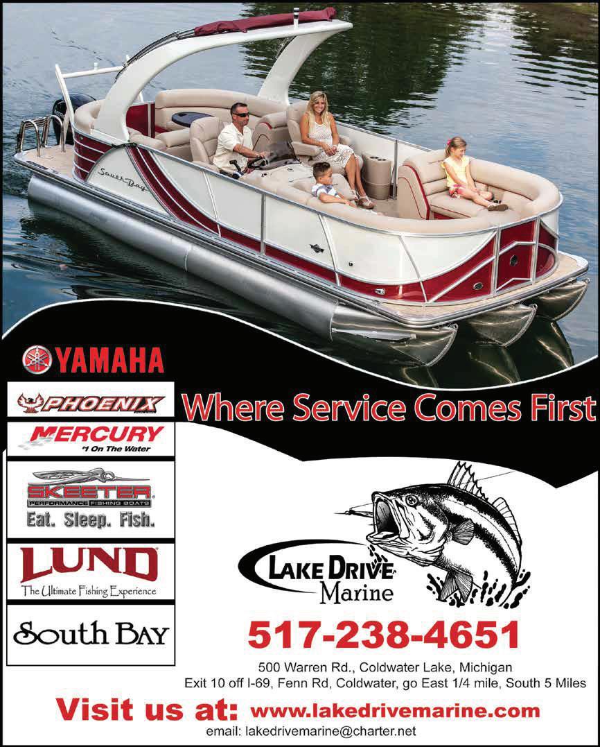 Lake Access is published annually and distributed throughout the lake and recreational community in Branch County. Every effort is made to avoid errors, misspellings and omissions. If, however, an error comes to your attention, please accept our sincere apologies and, if it’s important, please notify us. Thank you. No part of this publication may be used without written permission from the publisher. © 2018 all rights reserved.