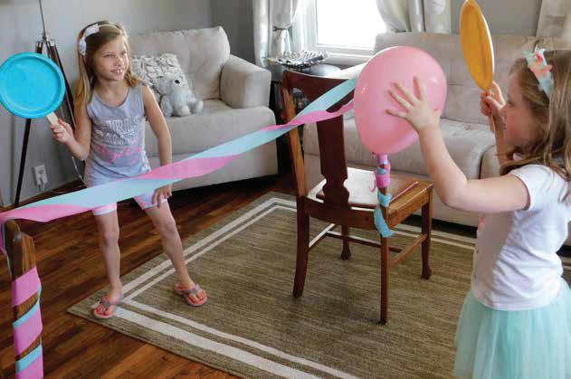 Step 3: Enjoy hitting balloon back and forth between players. A yarn or tape line can mark off sides of playing area. When balloon hits floor on a player’s side, the other player gets a point.