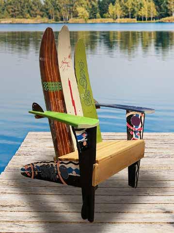 But the artistry of the lake community extends far beyond mailboxes. It bursts forth in vibrant garage murals, hand-carved signs, playful metal sculptures gracing front yards, and even in the delicate brushstrokes of Leslie Blankenbuehler's canoe trip paintings to a delicate Liiy. From bold, eye-catching colors to intricate needlepoint scenes of lake vistas by Nancy Murdock— framed with reclaimed wood from an original cottage—Lakers find endless ways to express their deep connection to the water, the land, and each other.