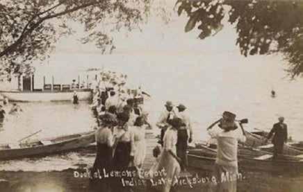 “Stutzman’s Slide” the slide provided fun for the entire family at a cost of 25¢ per half hour. Thrill-seekers would climb to the top, mount a wooden sled and zoom down the track, hitting the water at a terrific speed (at least when you were a kid). The slide, located on the north shore of Omena Lake – then called Crotch the lake, was in operation from about 1916 to the late 1930s.