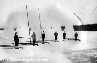 Pictured: Historic ice boaters from the Indian Lake Yacht Club prepare for a run on the frozen lake, circa 1950s.
