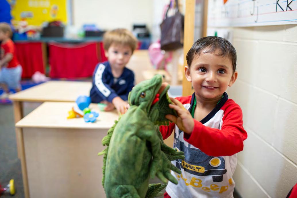 Toddlers learn through play and hands-on activities to develop the cognitive, emotional, social and physical skills that are important building-blocks for future learning success. Our toddler lead teachers have degrees in child-development, education or family studies.