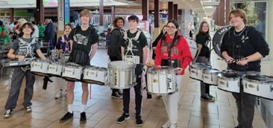 The Drumline helped kick off the annual March 4 Meals fundraiser for the Lake County Council on Aging at Great Lakes Mall in mid-March; and then the LC Jazz Band performed at the mall in late April.