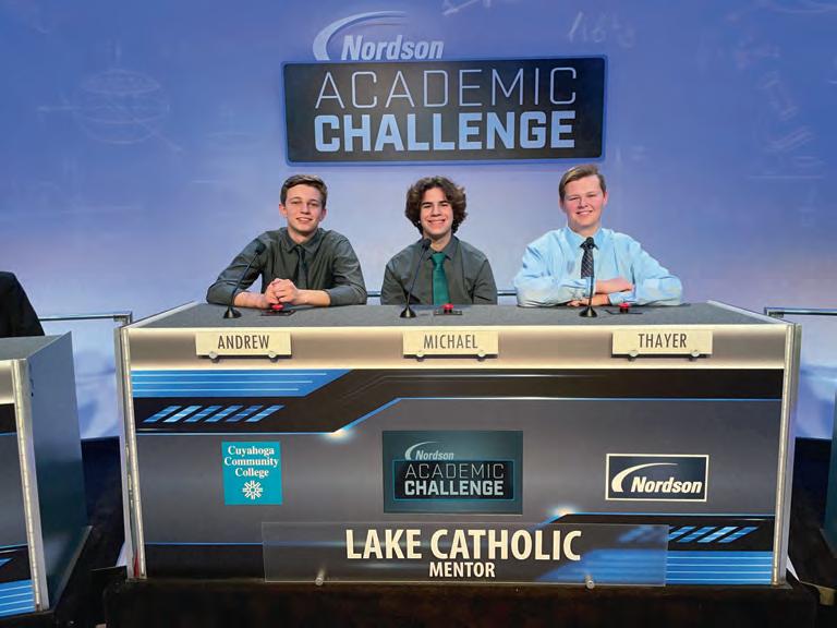 Lake Catholic students, Andrew Zalar (‘23), Michael Skalicki (‘23) and Thayer Fontana (‘23) went headto-head with students from Jackson High School (Massillon) and Minerva High School in the NordsonAcademic Challenge. The Cougars finished second with 560 points, behind Jackson (670) but ahead of Minerva (420). The episode aired March 25 on News 5 Cleveland.