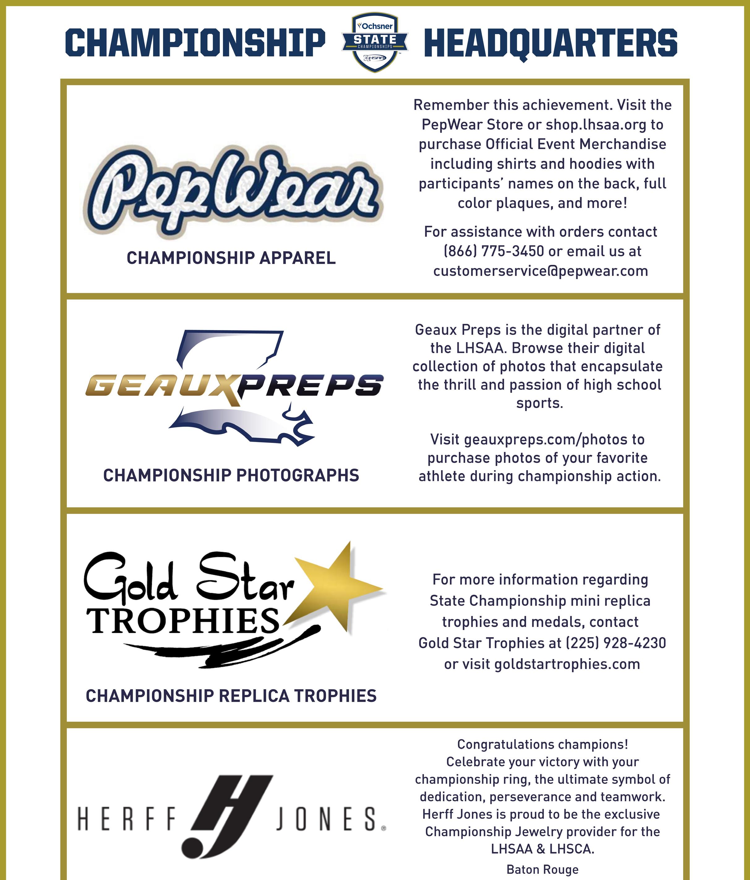 Our state qualifiers are members of the 400+ schools that represent the LHSAA. What an honor it is to be representing and supporting one of these schools. Congratulations to the LHSAA teams, coaches, and officials that have worked tirelessly to get to this prestigious event.