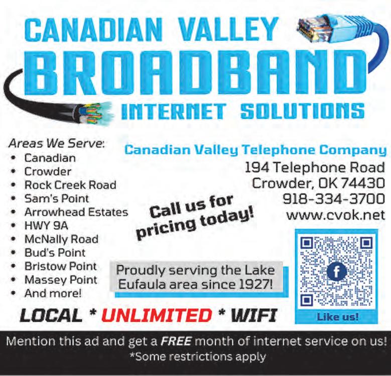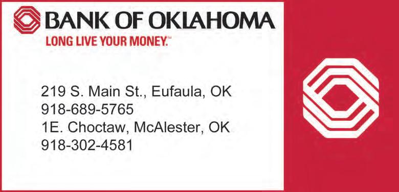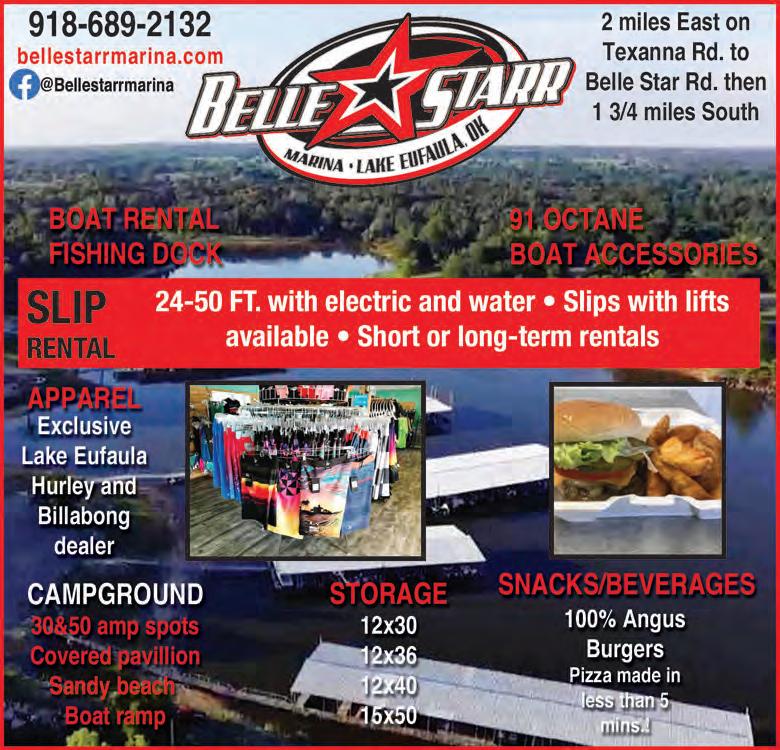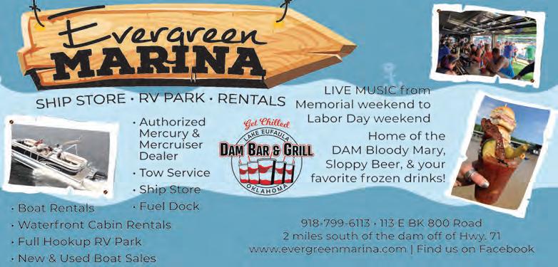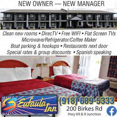 851 N. Main St. • P. O. Box 792 Eufaula, OK 74432 918.689.7751 VisitLakeEufaula@outlook.com VisitLakeEufaula.com