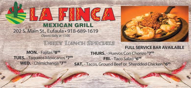 La Finca 220 South Main St. Eufaula, OK 74432 918-689-1619