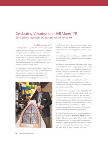 Celebrating Volunteerism—Bill Morris ’70 2010 Jeffery Page Rein Wadsworth Award Recipient Paul Desmarais Jr. ’73