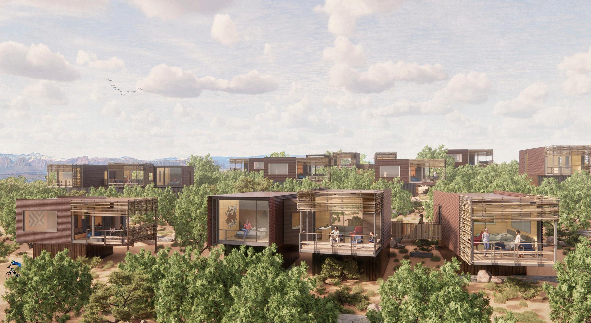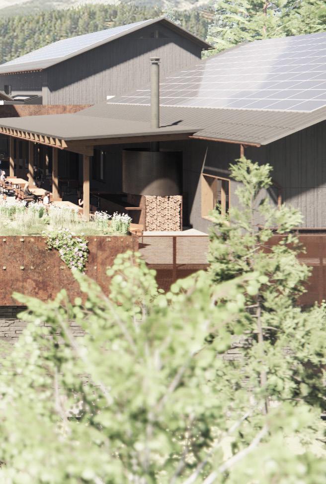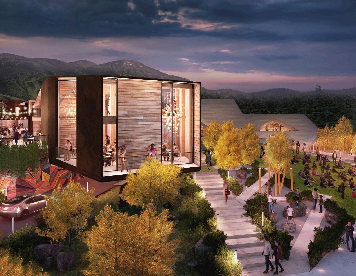 The master plan envisions an outdoor, active lifestyle mountain community, designed to encourage pedestrian, bicycle, and multimodal transportation. This new 20-acre mixed-use community includes 100,000 square feet of hospitality, commercial, and mixeduse elements along with retail, restaurants, a brewery, a grocery store, a multi-modal transit center, town plaza, music amphitheater, and lakeside amenities.
