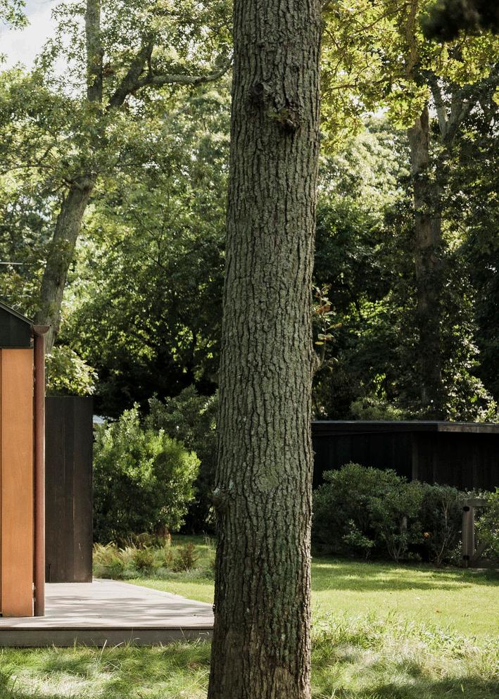 The North Fork residence, located on Long Island, was designed as a weekend retreat for a couple and their young child. The clients desired a house that felt low-key and subdued, with a strong connection to their waterfront site. Inspired by the feeling of camp, the regional barn building typology, and the concept of the Scandinavian summer house, the project comprises a collection of simple wood gable buildings situated between two ravines.