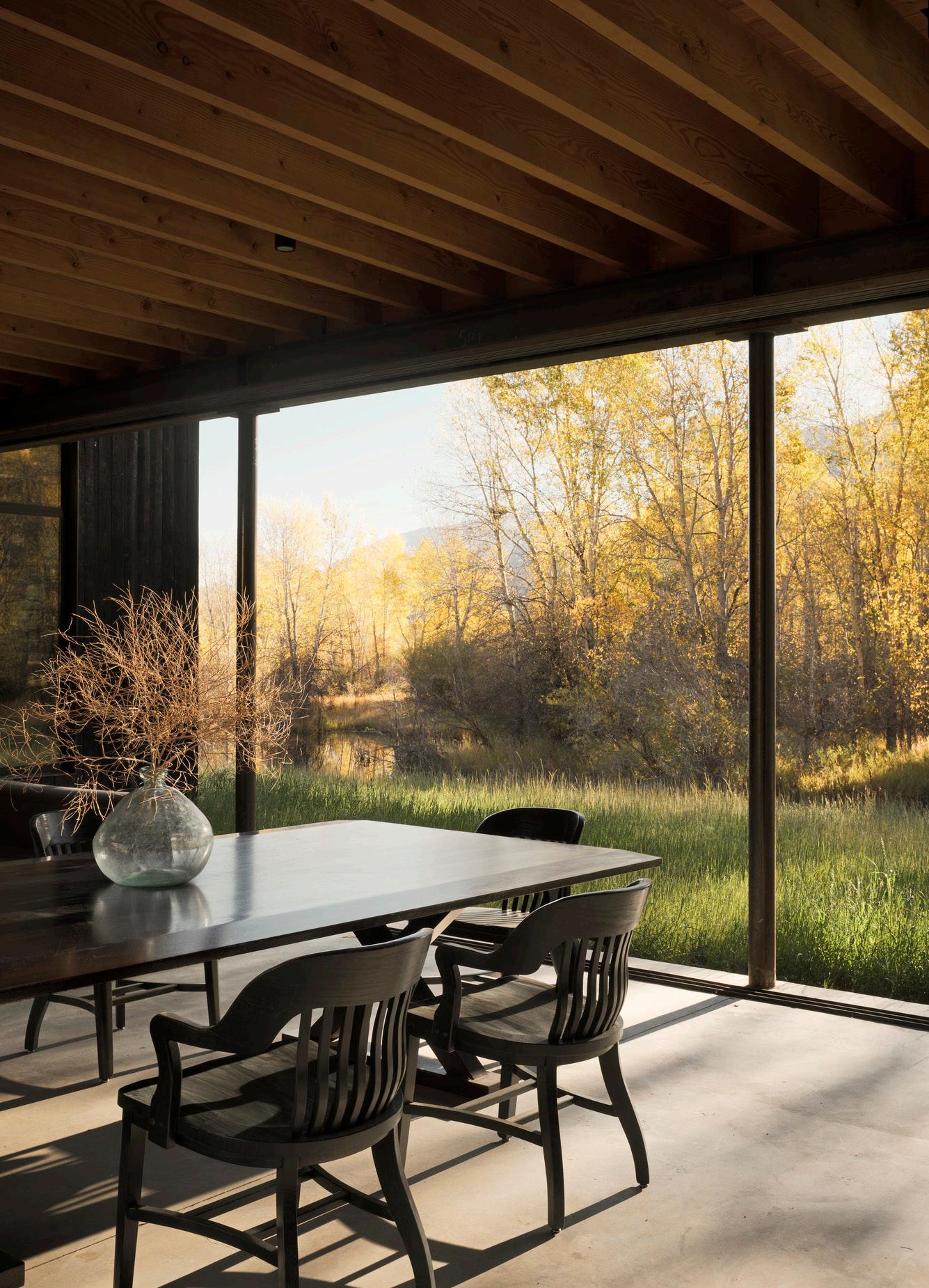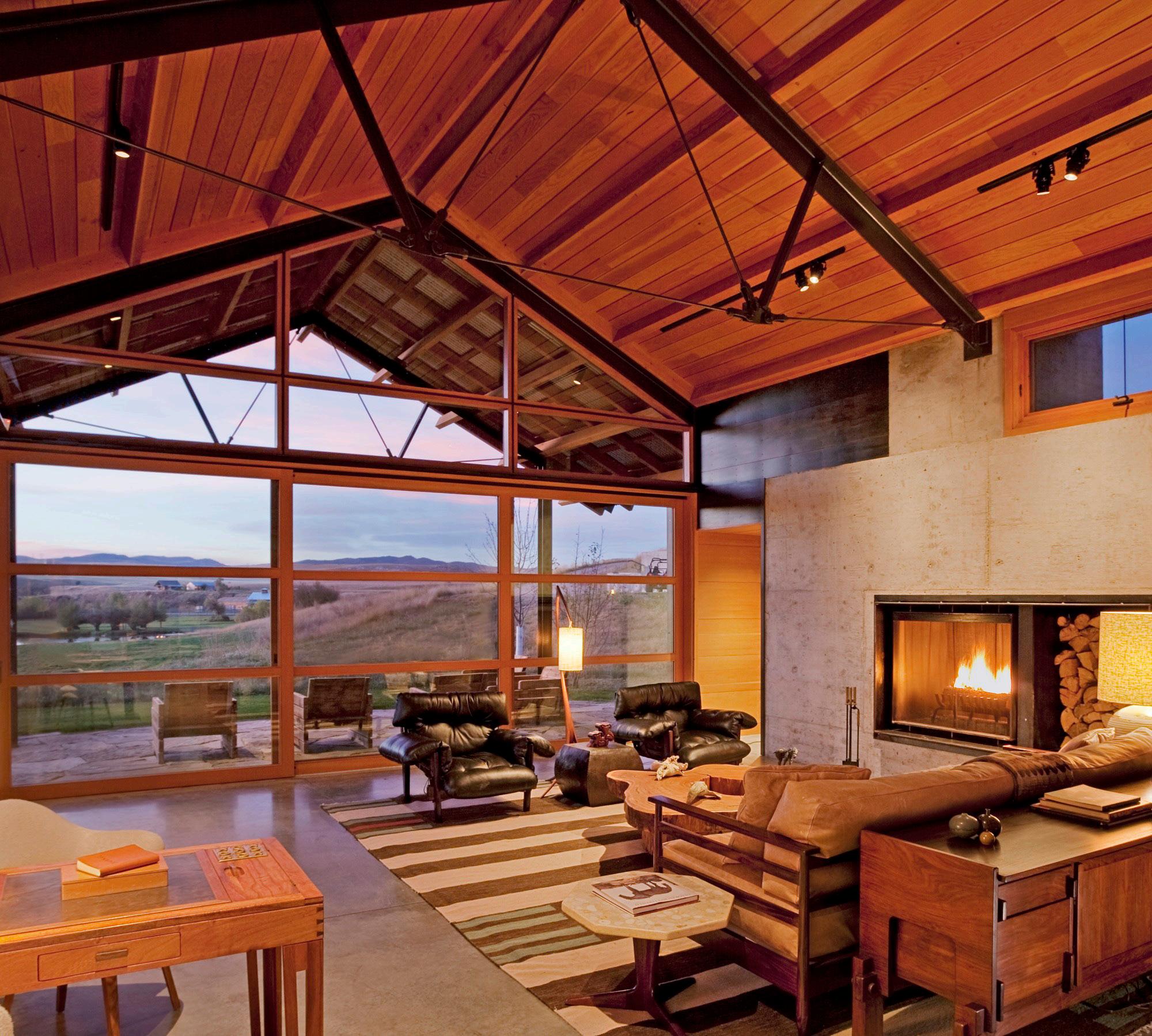 The LC Ranch was designed in response to Montana’s dramatic landscapes and climatic realities so its owners could enjoy its surrounding countryside regardless of the season. The house sits in the transition between rolling hills of native short grasses and the riparian valley of the Gallatin River. One of the spring-fed creeks that feed this river flows parallel to the house and can be seen from every room.
