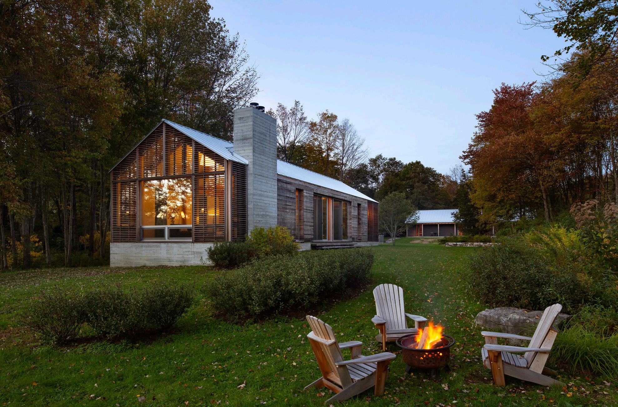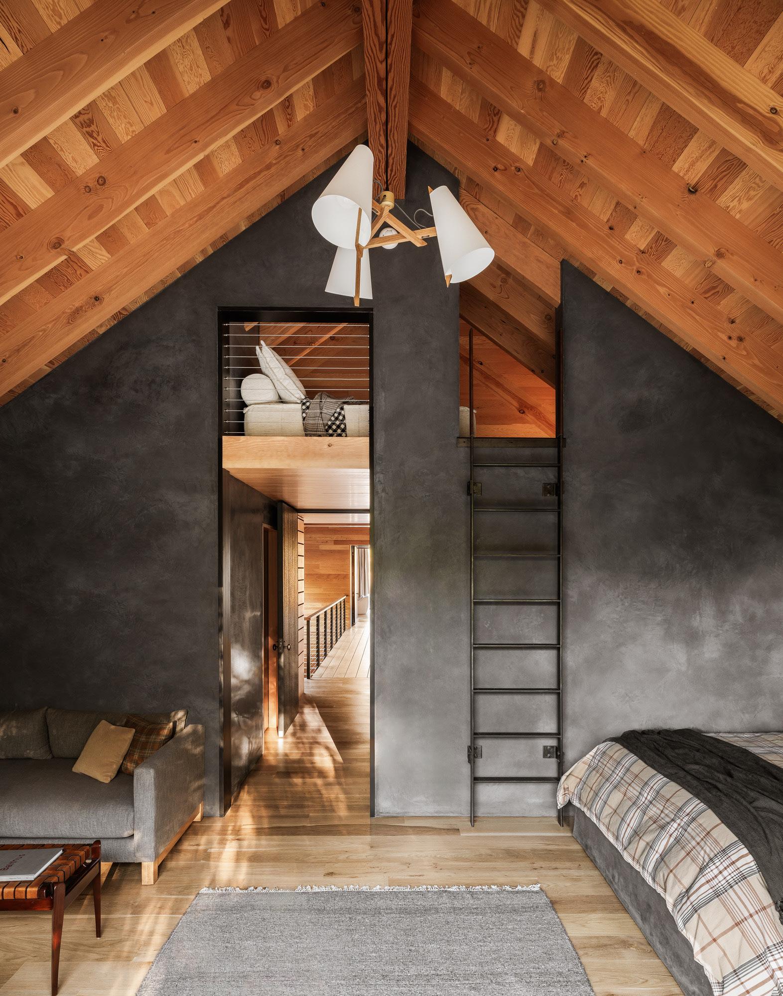 A large timber pavilion contains the primary living spaces and offers transparency both to mountains to the east and the intimacy of the courtyard to the west. The pavilion links two gables, reminiscent of western homesteads. The Main Bedroom occupies a quiet and monolithic gable assembled of local field stone, while a charred cedar barn contains guest rooms, sleeping lofts and elevated catwalks to explore after long days on the mountain.