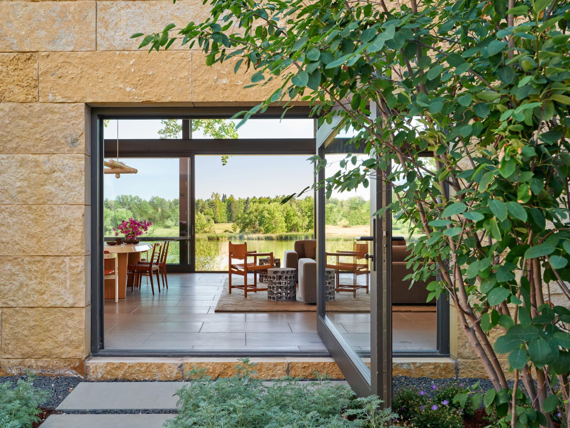 Sited on a peaceful neighborhood lake, this Boulder, Colorado residence is thoughtfully designed to compliment the landscape of a unique site that bridges a neighborhood and the foothills of the Front Range. A series of retaining walls tuck the house carefully within a gently-sloped hillside, creating a sense of privacy from neighbors and a connection with the adjacent open prairie. A variety of indoor and outdoor living spaces promote an active lifestyle across all seasons.