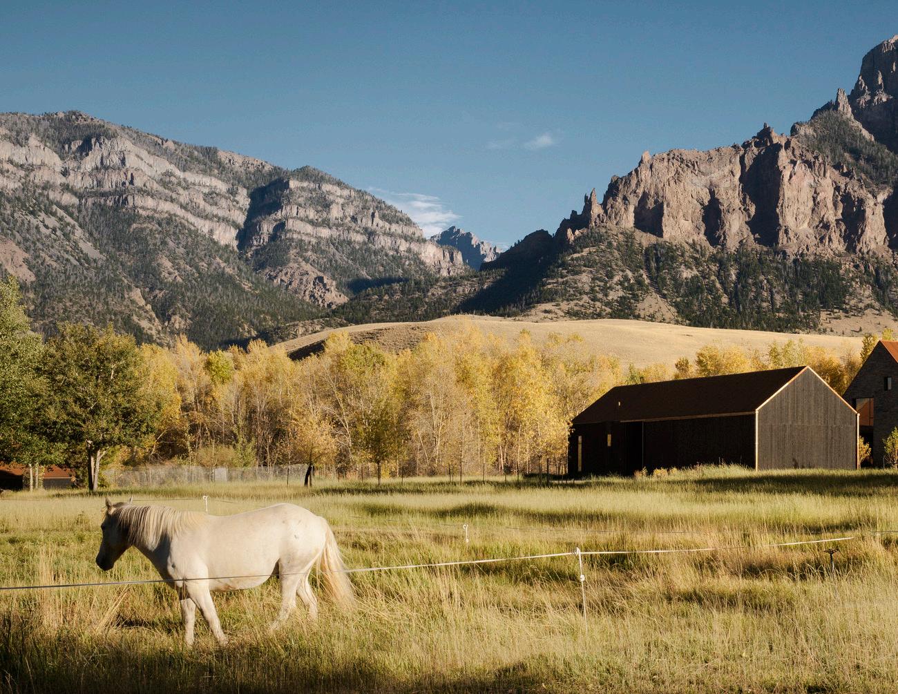 Inspired by their interest in sustainable ranching practices, wildlife preservation, and stream restoration, the clients sought to create a modern interpretation of a homestead that responded to the context of its place. The new dwelling connects to the site’s existing ranch infrastructure along the south fork of the Shoshone River while maintaining privacy and embracing the wild parts of their ranch. A stone volume sits on the edge of the wild while a barn faces the ranch, serving as a threshold to the compound. These two forms are connected by a sod roof building, all surrounding a small central courtyard.