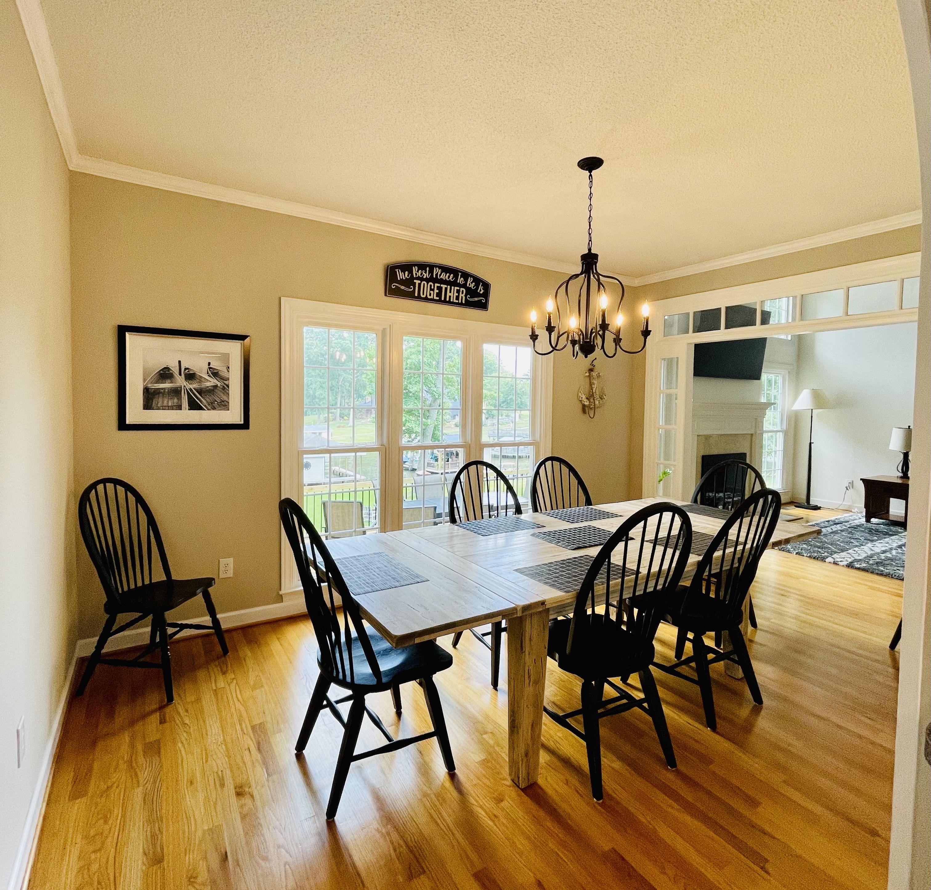Thehousewasmorebeautifulthanexpected,andthelocationwasideal.Monica,theownerofthehome,madecheck-ineasy.Shewasvery responsivetoquestionsalso.Oneofthebestthingswasthateverythingwaslabeledinthekitchen.Thehouseisonaroadthatloopswhich madeaperfectspottowalkthedog.WeREALLYappreciatedbeingabletotakeourpup....Thekayakswereafunadditionaswastheability tohaveapontoonboatwaitingforusfortheweek.MyhusbandandIareintheprocessofmovingandthiswastheidealmostrelaxing getawayfromthepacking.Thehouseisbeautifulandclean.Thefurniturewasverycomfortable.Theviewswerestunning.Largewindows,but alsoblack-outcurtainssowecouldsleepin.Thebedsweresupercomfy.Thetelevisionwashugesoitfeltlikewewereatthemoviesinthe evening.Thekitchenhadeverythingweneeded.Themasterbathisluxurious,biggerthanourbedroomathome.Andthesheets,cotton percalewithkayaksonthem.Socrispandsuchalovelydetail.(Lately,whenwevacation,we'verunacrossAmazonbasic100%polyester sheets.Whowantstosleepinpolyester?)KudostoMonicaforbeingagreathostess.Thiswasoneofmyfavoritevacations.I'llbeback.Also, whenwe'dgoforwalks,theneighborswereallveryfriendly.LakeGastonisglitteringandfuntoexplore.Whenweweren'toutside,wespenta lotoftimeatthelargebeautifuldiningroomtable.