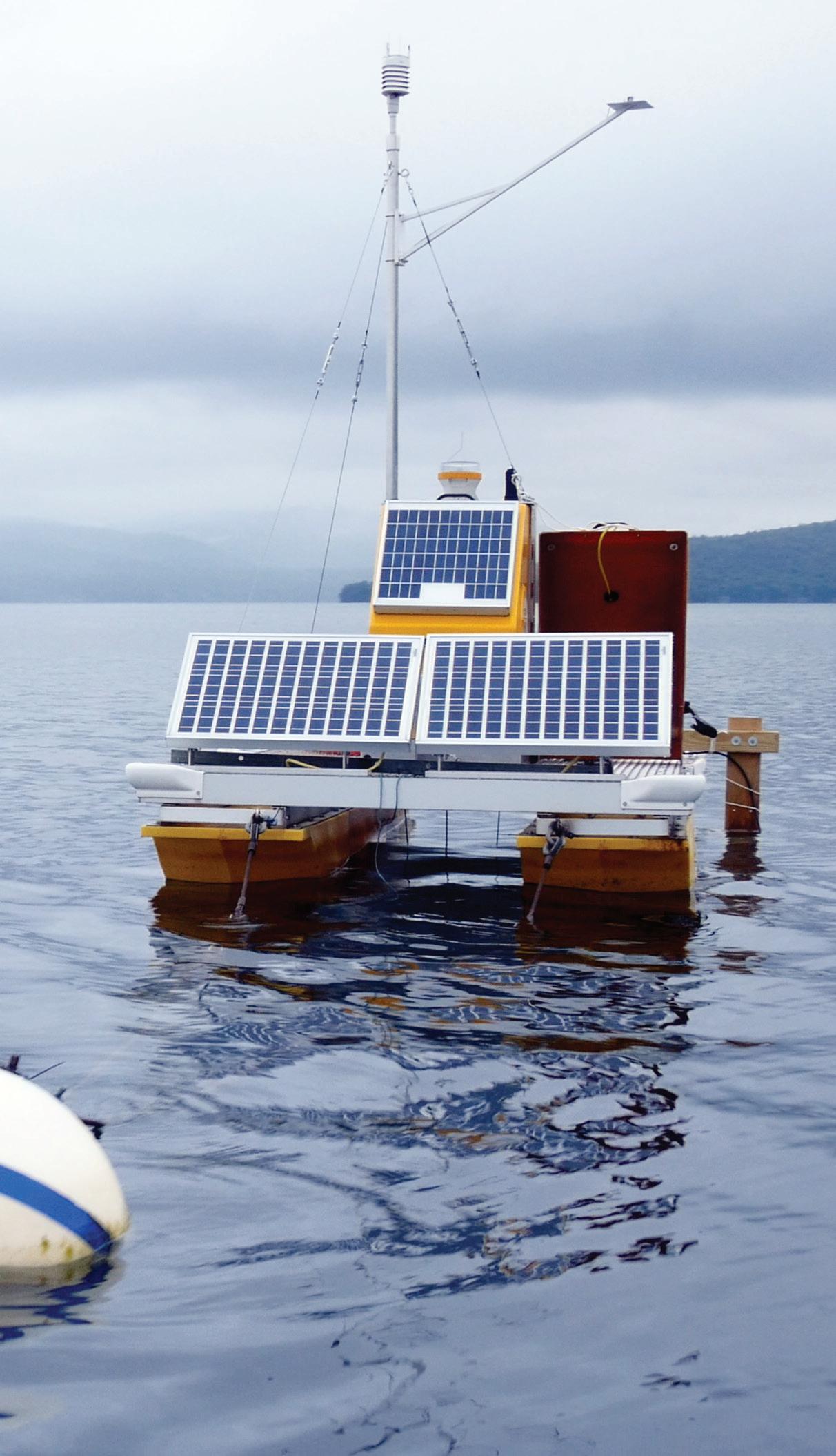 Today, the Jefferson Project continuously monitors Lake George with a suite of real-time sensors, weather stations, tributary monitoring sites and vertical profilers. This system regularly collects over a quarter billion data points per year, capturing complex interactions between climate, nutrients and water quality across the Lake and its watershed.
