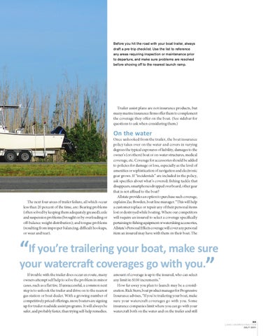 “If you’re trailering your boat, make sure your watercraft coverages go with you.” 33 LAKELANDBOATING.COM J U L Y 2 011