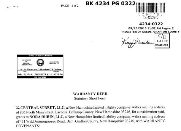 09/16/201642340322QI 285,00022CENTRALSTREETLLC, 08/15/20073438453QI 325,000ROBERTS,JOHNB