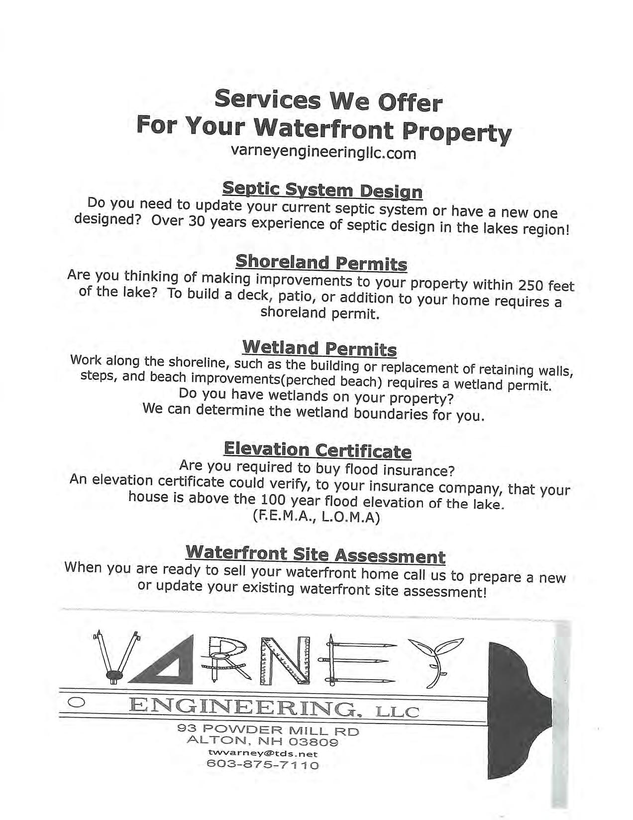 TypeofRoofCovering: Moistureorleakage: Comments: SELLER(S)INITIALS / BUYER(S)INITIALS / © 2014 NEW HAMPSHIRE ASSOCIATION OF REALTORS®, INC. ALL RIGHTS RESERVED. FOR USE BY NHAR REALTOR® MEMBERS ONLY. ALL OTHER USE PROHIBITED 7.2021 Page 3 of 5 268 Governor Wentworth Highway, Tuftonboro, NH 03853- Guest House Driveway easement Current USE Jones and Beach Residential 5yrs Hydronic hot air LP Left of driveway 5yrs Standing Seam metal JP 09/30/22 8:11 AM EDT dotloop verified dotloop signature verification: dtlp.us/0nF8-yKN8-jpDQ