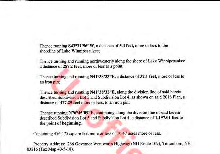 DUEDILIGENCEYOUDEEMNECESSARYWITHRESPECTTOINFORMATIONONANYSEXUALOFFENDERS REGISTEREDUNDERNHRSACHAPTER651-B.SUCHINFORMATIONMAYBEOBTAINEDBYCONTACTINGTHELOCAL POLICEDEPARTMENT. SELLER(S)INITIALS / BUYER(S)INITIALS / © 2014 NEW HAMPSHIRE ASSOCIATION OF REALTORS®, INC. ALL RIGHTS RESERVED. FOR USE BY NHAR REALTOR® MEMBERS ONLY. ALL OTHER USE PROHIBITED 7.2021 Page 4 of 5 268 Governor Wentworth Highway, Tuftonboro, NH 03853- Guest House unfinished no 1 2018 no Pex 5yrs 5 On Demand 200 Electric 5yrs Spectrum JP 09/30/22 8:11 AM EDT dotloop verified dotloop signature verification: dtlp.us/0nF8-yKN8-jpDQ