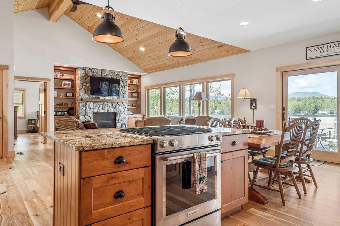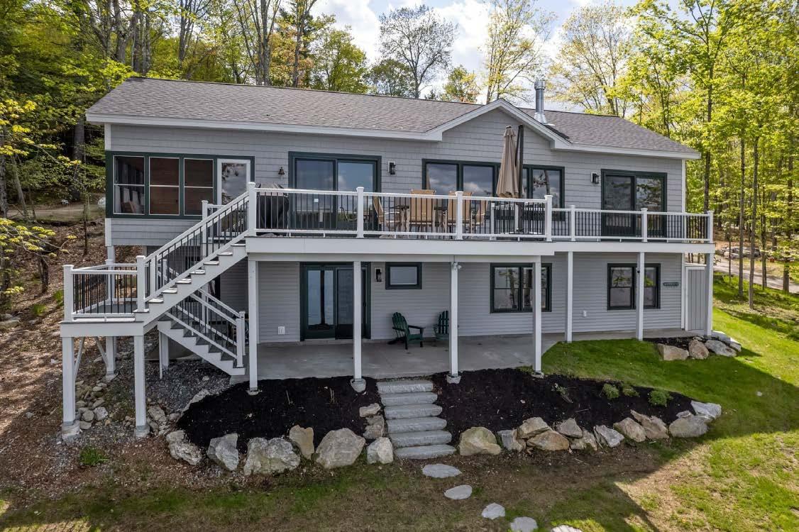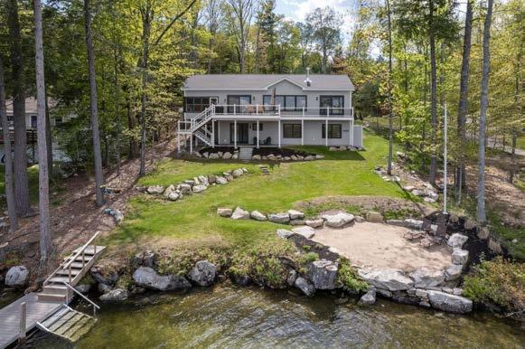 WelcometoyourdreamlakefrontretreatonLongIsland!This magnificent 4-bed, 3-bath house with 100ft of Lake Winnipesaukee waterfront offers a tranquil oasis where modernluxurymeetsrusticcharm.Builtin2020,themainfloor boasts an open concept design seamlessly combining living, dining, and entertaining spaces with hickory flooring throughout.Thekitchenshowcasesrusticaldercabinetry,sleek granitecountertops,stainless-steelappliances,andabeverage bararea.Gatheraroundthekitchenisland,enjoythecozygas fireplace in the vaulted living area, and admire the breathtaking lake and Ossipee Mountain views through large Anderson windows. The first-floor bedroom has heated floors in the bathroom for year-round comfort. Step onto the low maintenance Azek deck that spans the length of the home, savoring the stunning lake vista and three-season porch adorned with pine beadboard to enjoy bug-free outdoor enjoyment. Downstairs, find three more bedrooms, full bath, andgatheringareawithwalkoutaccesstoamanicuredlawn, perched beach, and 6’X40’ dock. This remarkable property features Certainteed vinyl siding, central AC, an irrigation system, and an outdoor shower for post-boating refreshment. Don't miss out on this unique opportunity to make this remarkablepropertyyourown!