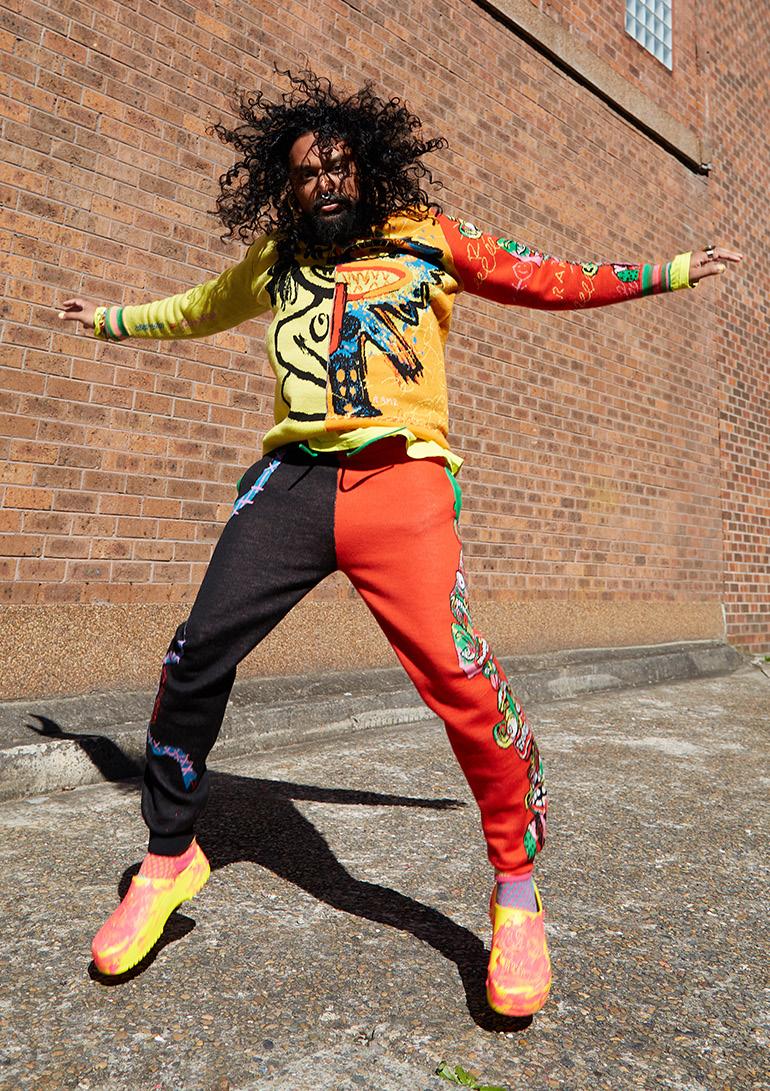 Image: WAH-WAH x Ramesh Mario Nithiyendran, 2022, Australian merino wool as worn by Ramesh. Stylist Kirsty Barros. Photo Lexi Laphor. Courtesy of WAH-WAH Australia.