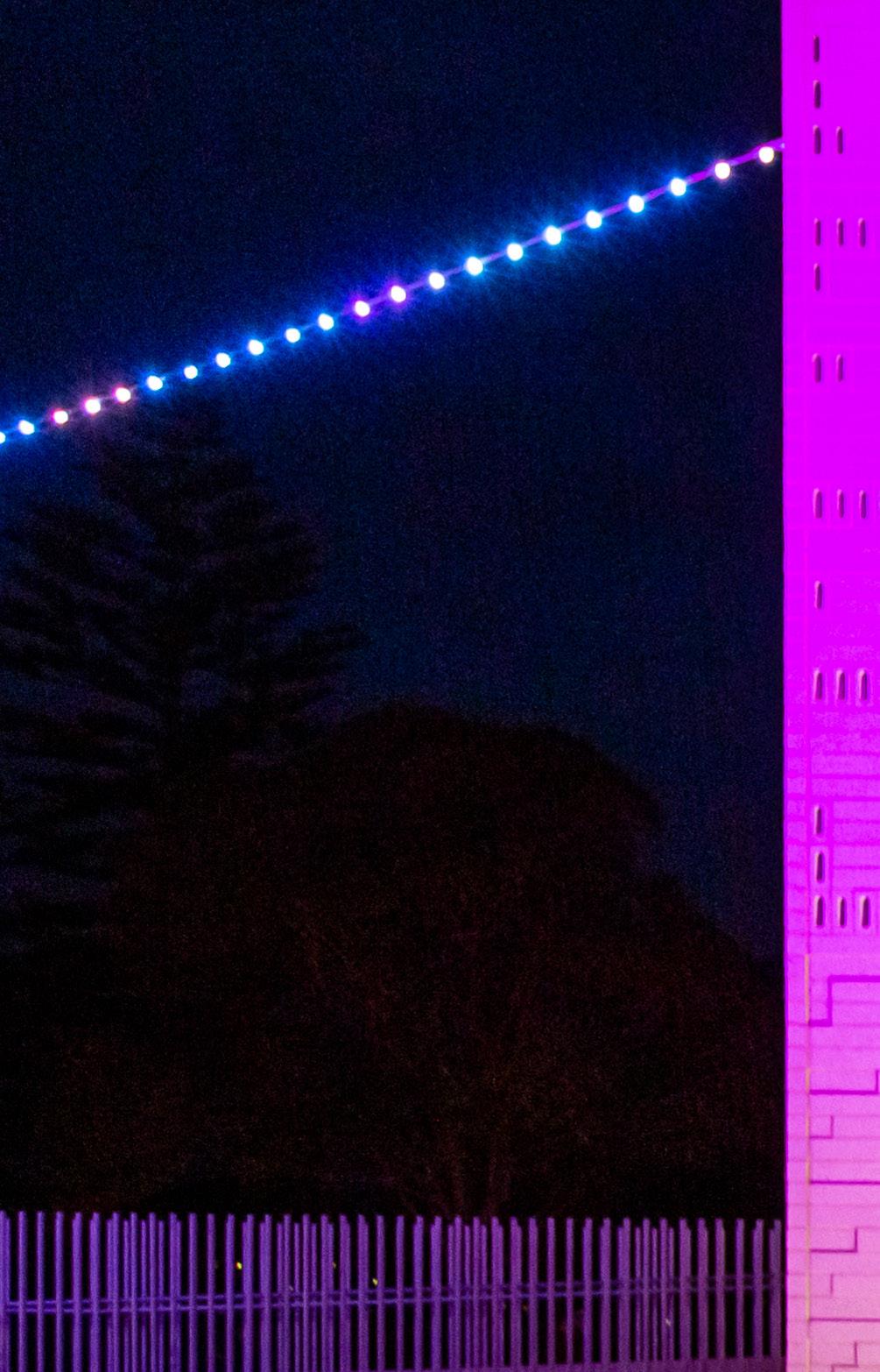 Celebrating the building's experimental nature is The Catenary, a collaboration between Lake Macquarie City Council and the Design Lab at The University of Sydney. Led by Dr Luke Hespanhol, students of digital placemaking have developed an interactive digital public art piece along the Speers Point Park promenade.