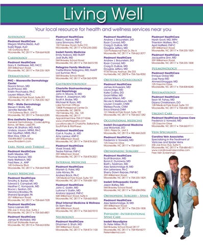 Living Well Your local resource for health and wellness services near you Audiology Piedmont HealthCare Megan Mathis-Webb, AuD Susie Riggs, AuD 140 Gateway Blvd. Mooresville, NC 28117 • 704-664-9638