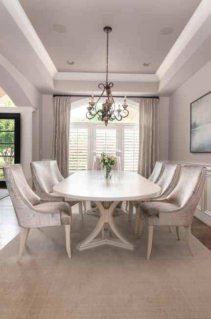 The home is stylish and functional— not ostentatious; the architecture and the client’s tastes are traditional, so the furnishings and design-style reflect that. “After the clients got settled, we renovated the master bath to create a home spa, added new front doors, and changed some flooring,” says Cruz. “From design-to-finish this project took approximately 11 months including all of the COVID-related delays.”
