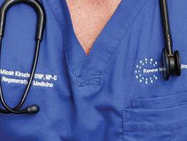 I got started in the medical eld when I was just 17 years old and worked as a volunteer rst responder in rural Wisconsin. is is where I cultivated my passion for helping people. Four years ago, I opened Renew Health and Wellness in Cornelius where I am also the Nurse Practitioner. We are so proud to be a leading and progressive healthcare solution for patients who have been failed by traditional medicine. As a true private practice (which is unheard of these days!), we are able to keep the practice patient oriented. Renew’s services include medical weight loss, women’s and men’s health, IV hydration, and anti-aging longevity medicine. We provide proactive, not reactive, healthcare and our model of training blends the best of traditional medicine, preventive medicine, and wellness.