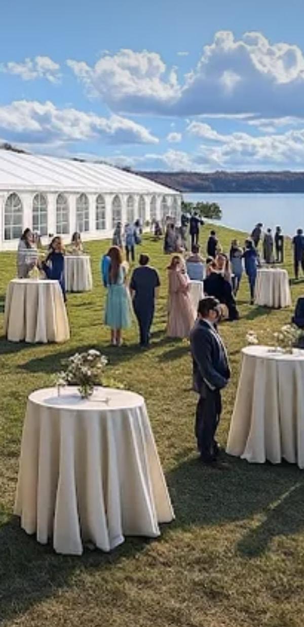 Currently undergoing interior renovations—including new wood flooring, lighting upgrades, refreshed bridal suites, and modernized restrooms—the space is evolving with today’s couples in mind. Exterior enhancements, including updated landscaping, a refreshed building exterior, and an outdoor patio beneath the tented area, are slated for completion by the end of this month.