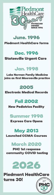 THIRTY YEARS AGO, two local medical groups made a decision that would shape healthcare in Iredell County for generations. Piedmont HealthCare began as a simple idea when leaders from Statesville Medical Group and Iredell Medical Associates recognized the potential of working together and proposed a merger. That idea became reality in June 1996, when the two groups officially united to form Piedmont HealthCare.