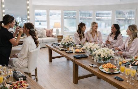 Inside, the venue is designed with the full wedding experience in mind. Private bridal suites offer a calm, luxurious space for getting ready, while a dedicated groom’s area ensures both sides of the wedding party feel equally considered. A separate rehearsal dinner space overlooking the water sets the tone for a meaningful start to the weekend, allowing families and friends to connect before the big day arrives.