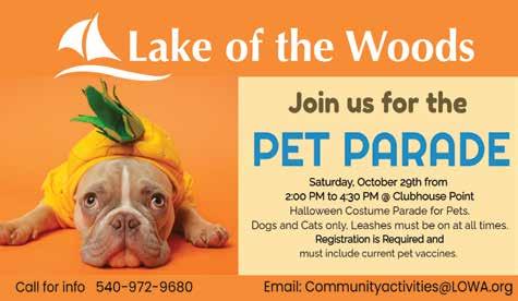 FOR PUBLICATION in the newsletter must be received in the Association office by noon on the Monday after publication for the next publication or by the preceding Friday if Monday is a holiday. All advertising and articles need to be submitted via email to lakecurrents@LOWA.org. The views expressed in guest articles and paid advertisements represent the opinions of authors and advertisers and do not necessarily reflect the views of Lake of the Woods Association, Inc. Call the communications office at 540-972-2278 for details about classified and display advertisements which must be prepaid (unless other arrangements are made). POSTMASTER: Send address changes to LOWA, Inc., 102 Lakeview Pkwy, Locust Grove, VA 22508.