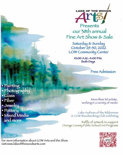 Vol. 20, No. 13 540.972.2237 LOWA.org /LOWAssociation October 21, 2022 The Official Newsletter of the Lake of the Woods Association, Inc. President's Letter 2 Board Agenda 2 Association News 2 - 10 General Manager 3 Board Minutes 3 Calendar 7, 8 Viewpoints 14 Orange County 17 Classifieds 18 19 Employment Opportunities 19