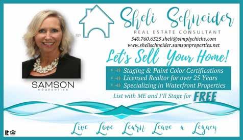 Red Cross Blood Drive: From noon to 6 PM, in the Community Center. Usually fourth Tuesday every other month (call to confirm date). You must be generally healthy and 17 or older. Go to www. redcrossblood.org for schedule and more detailed information. Make an appointment online or call 1-800733-2767. Making an appointment saves you time! Walk-ins accepted, on space available basis. Info: Ginny, 540-848-5829 or Carol, 540972-0664. Seeking Counseling? The LOW Church offers affordable counseling for all persons by appointment. Info: Church, 540-972-9060. Rappahannock Rapidan Community Services Care-AVan will provide transportation to health care (including picking up prescription medications) and legal appointments for senior citizens (over 60) and persons (over 18) with physical disabilities. Available Mon-Fri. with minimum of 48 hours’ notice. Free Service (donations accepted), Call 540-825-3100 ext. 3358 or 3013. Vision Impaired Support Group. Meets on the first Tuesday of the month at 10 AM, Community Center, Room 1. Sponsored by the LOW Lions. Contact: Gail Sauro, 540-972-1629 or Gail.Sauro@ yahoo.com. At 19, I came to the U.S. in 1982 from the old Soviet Union. Later as a Flight Attendant with Eastern Airlines, I met and married a Navy F-14 Fighter Pilot. We moved to Lake of the Woods in 1990 with our two children. The same year I received my Realtor’s degree from Germanna College. I also managed my husband’s construction company that he started at the lake. I am proud of my grown children, now 30 and 31. They grew up right here at the lake. Today, both my son and son-in-law proudly serve in the military, both NAVY SEALs. My dedication to this community and its members speaks loudly. Within the last 30 years, Lake of the Woods is transforming into a 4000-homes, vibrant, amenitiesfilled community. I have served on the Clubhouse and Pool Committees, and organized the LOW Walkers Club, currently 86 members strong. I enjoy being a member of the LOW Garden Club. As a new LOWA Board Member, I pledge to work hard, to apply years of experience, and to add a balanced approach to our ongoing assessments, amenities, and budget concerns.
