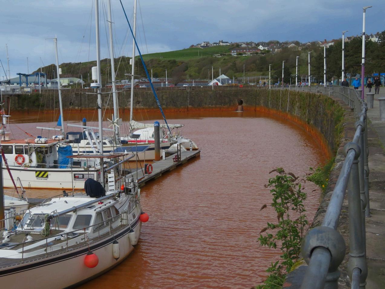 Whitehaven Harbour has been visibly polluted with acid mine water since December 2022. This is an ongoing environmental catastrophe with radiotoxic material in the hellish brew.