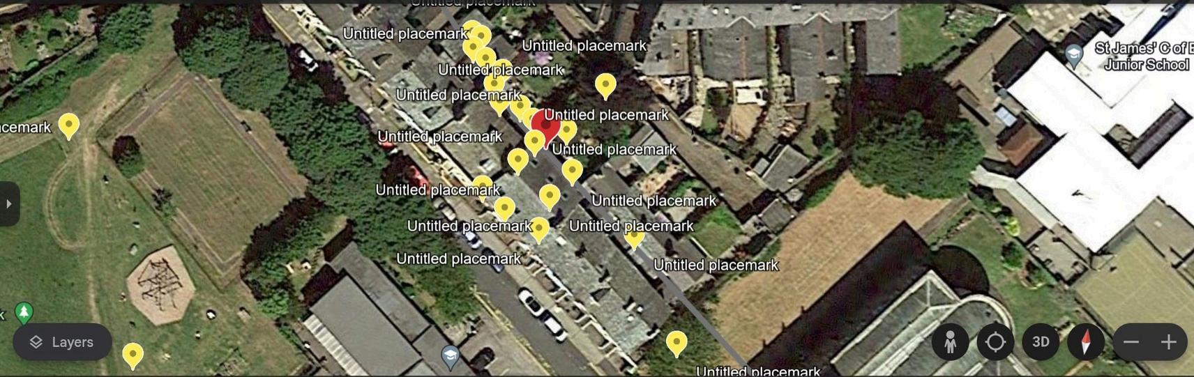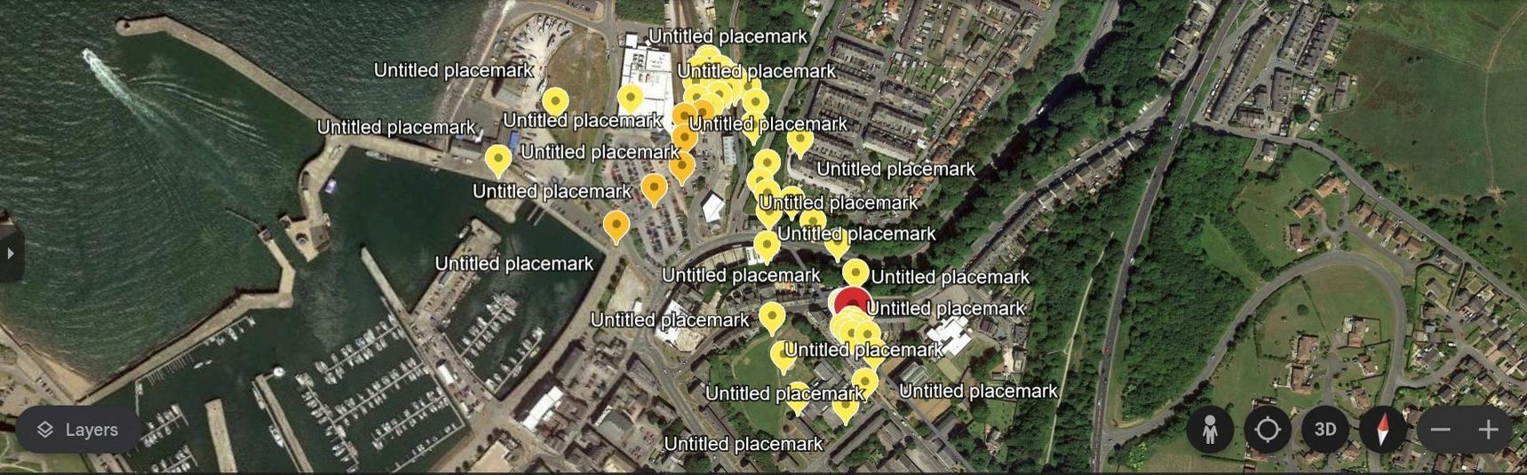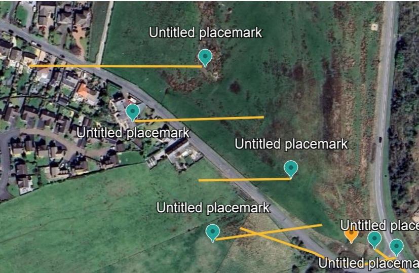 “I estimate that 10% of the ochre water flowing down in the direction of the sea becomes diverted into the previously mentioned pool area (near the station/beneath Tesco), the rest travels to the sea, the vast majority takes the route I have coloured orange. Dowsing on the land is more geographically accurate than by remote methods.” Dowser 1