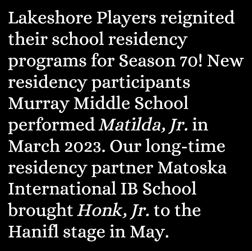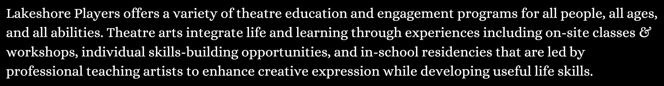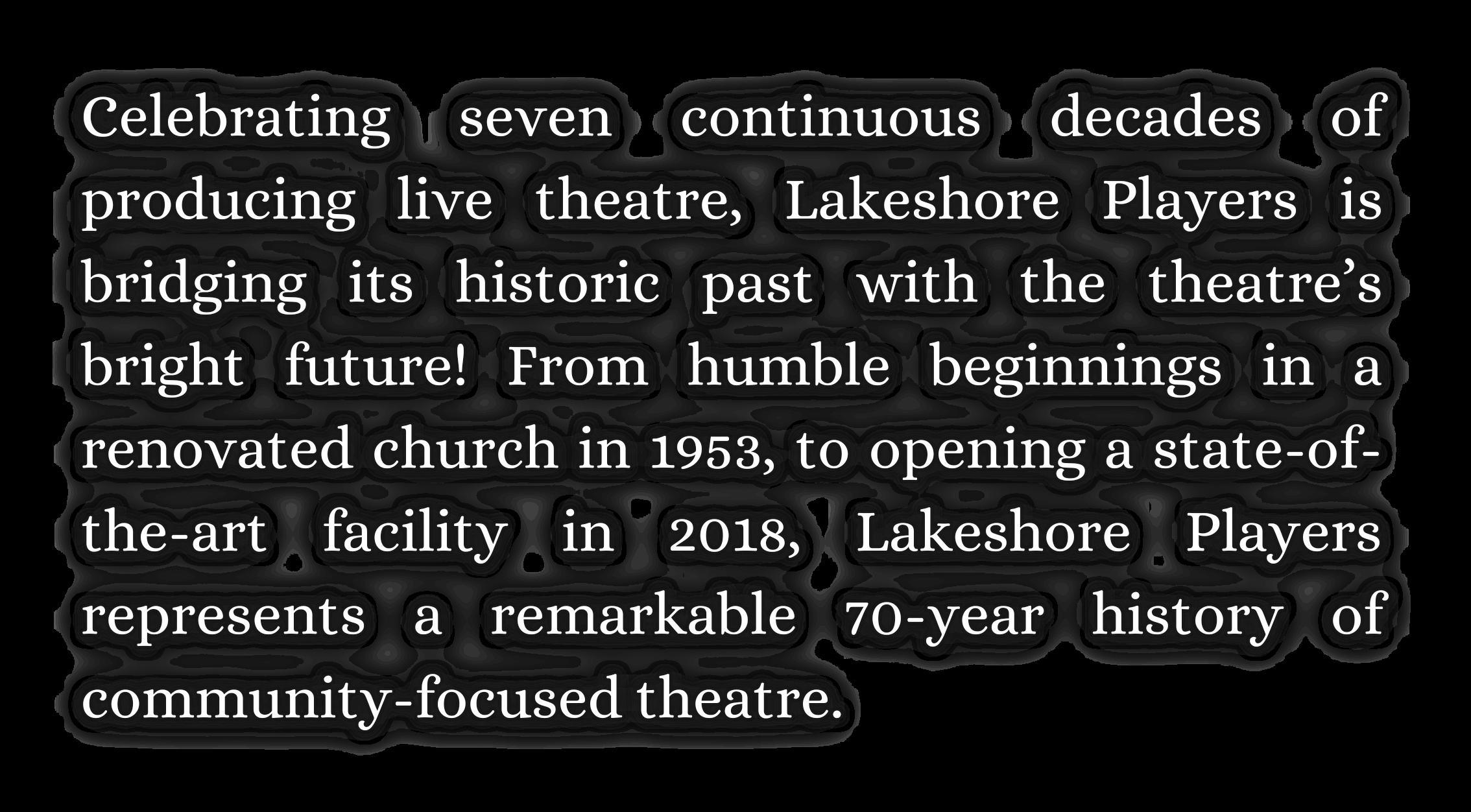 Thank you to our Capital Campaign Donors and the community for helping to create the new home of Lakeshore Players and Children’s Performing Arts Your support and belief have allowed us to expand our reach and impact into the community